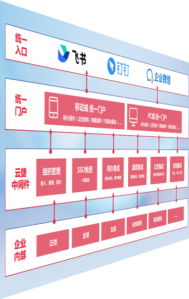对协作平台提供支持服务,,支持企业应用与协作平台对接,,,,包含组织同步、、、消息集成、、、、待办集成等。。。。支持目前主流的协作平台:钉钉、、、企微和飞书。。