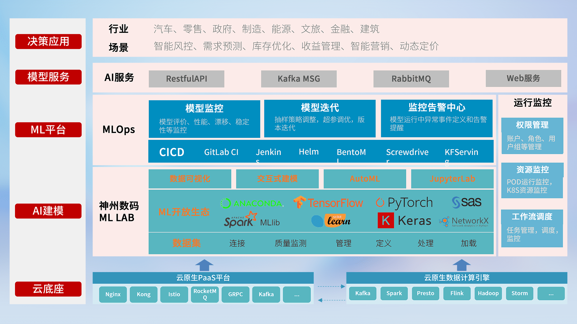 数据+模型双引擎驱动,,,,面向智能服务场景,,,,快速灵活利用AI技术,,,支持业务决策,,助力企业智能化转型破局。。